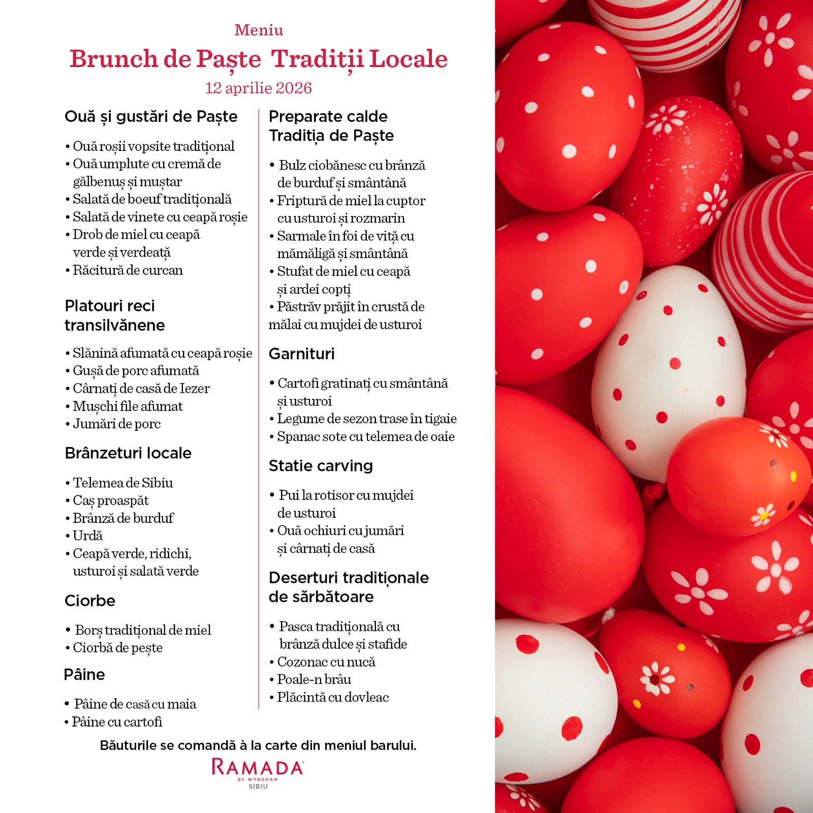 Pe 12 aprilie vă invităm la Ramada Sibiu pentru un 𝐛𝐫𝐮𝐧𝐜𝐡 de sărbătoare inspirat din gusturile și tradițiile locale.